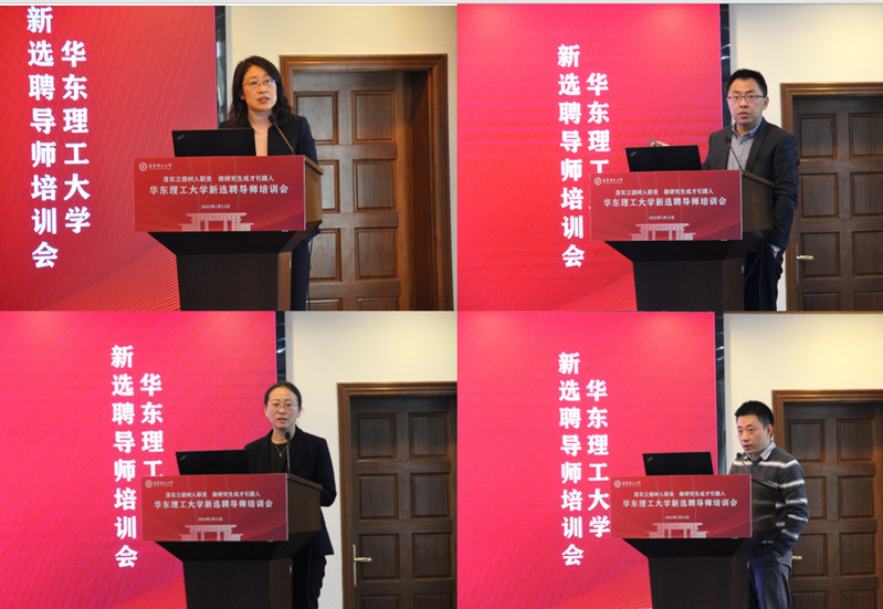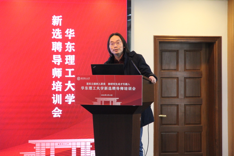 朱为宏致辞时对各位老师晋升为研究生导师表示祝贺,并介绍了近期我校在推进导师评价机制改革、导师选聘制度优化等方面的一些新举措。这些举措为年轻教师加入导师队伍创造了更优越的条件,同时也对加强导师培训、培养过程监控等提出了新的要求。朱为宏指出,研究生院今年特别优化了导师选聘制度,取消导师申请职称限制,对特聘研究员、特聘副研究员、国家高层次青年人才第一时间内开通博导、硕导绿色通道。2021年,学校新增博士生导师46名,硕士生导师110名,致力于让青年教师有更多、更直接、更实在的获得感。他还结合自身指导研究生的经历,建议新导师不断引导学生主动融入科研,积极发挥优秀学生的带动效应,确保学生按期顺利毕业。他表示,各位新导师的加入,将为我校科学研究和研究生培养注入新的力量,也必将为学校“双一流”建设作出新的贡献。