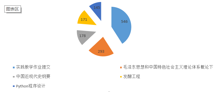线上教学环节的使用,反映了平台对师生教学需求的满足情况。目前,平台上教学活动开展较多的是基础主干课,使用频率高、数量多,大大地提高了教师的教学效率,反映了教育数字化转型的优势。