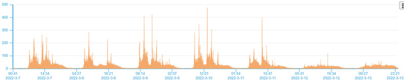 每日登录人次反映了师生在教学过程中访问平台的频繁程度,自3月7日—3月13日的每日登录人次如下。