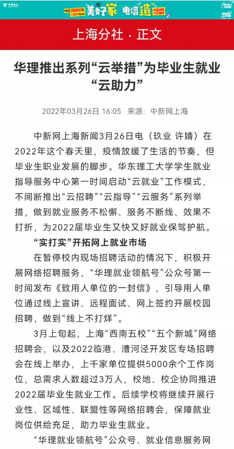 【新民晚报客户端】华理推出系列“云举措”为毕业生就业“云助力”