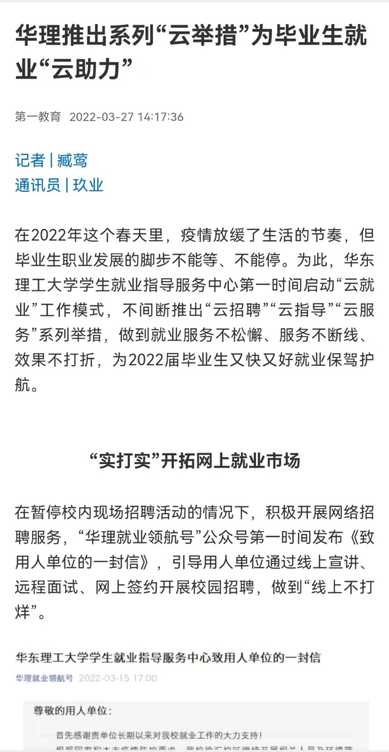 【第一教育】华理推出系列“云举措”为毕业生就业“云助力”