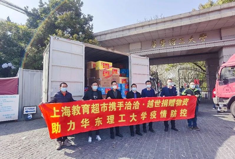 在化工学院1997级校友刘汉伟的协调下,上海教育超市携手供应链企业,助力华理防疫工作,捐赠了一批价值10万余元的物资,包括150余盒坚果、近400盒核桃、60箱可乐、1100余箱矿泉水、600盒口罩。
