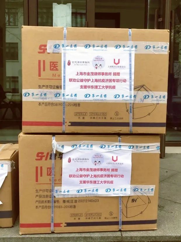 法学院接到产学研合作单位上海金茂律师事务所捐赠的一批抗疫物资,包括2400只N95口罩和160瓶酒精喷雾。