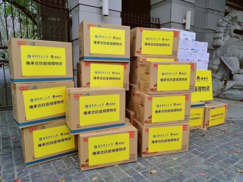 4月10日,一批由山东济宁商会组织、中建八局总承包公司捐赠的抗疫物资运抵华理。这批物资包括卷心菜10000斤、芹菜10000斤、土豆10000斤、洋葱10000斤、蒜苔6000斤、西红柿5000斤、黄瓜5000斤、菠菜1000斤、香菜1000斤以及大蒜头1000斤。