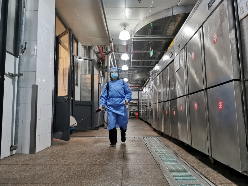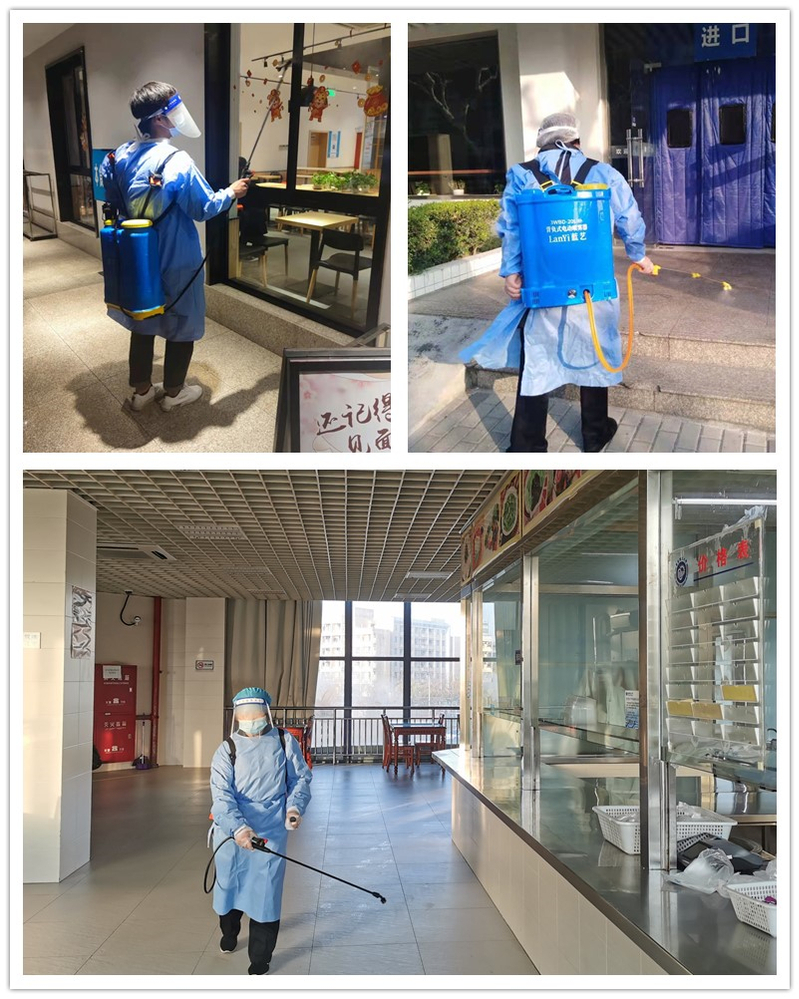 严防严控,为校园抗疫保驾护航,工作人员对食堂各个角落进行消毒,每日不曾松懈的工作,切断新冠病毒传播路径,全方位保障校园环境。