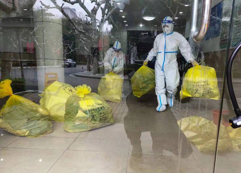 同学们还在睡梦中,工作人员们早已开始了一天的工作:窗台、楼道、洗衣房、卫生间……各角落一丝不苟地消毒、保洁,之后再协助送餐,还有连夜抢修房间设备、搬运物资、值守变压站的工作人员,感谢你们日夜操劳,为我们营造安全洁净的生活环境。
