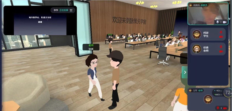 “相比大家之前用的远程视频会议软件,这种全面沉浸感的课程体验,让我们在不知不觉间有了更多交流。”这次沉浸式线上课程让同学们感觉既亲切又新奇。“‘元宇宙’办公确实让我体验到更新、更有趣的上课方式。”