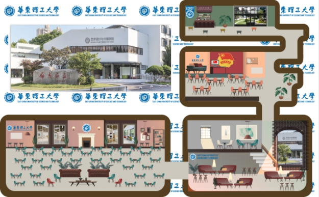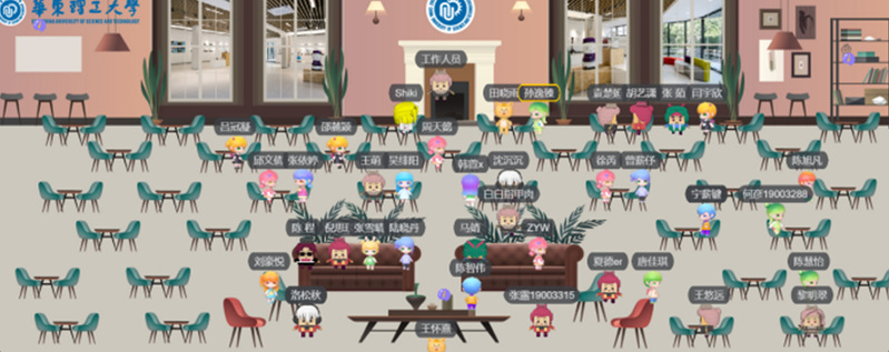 该设计根据徐汇校区“晨园”的真实剖面形态与空间结构,创作了不同空间的基本布局,并融入了当月特色团日活动需要的素材,让大家足不出户也能感受身临其境的氛围。平台分为研讨室、主题团日室、休闲娱乐室、图书室等功能空间,大家可以在虚拟晨园中自由穿梭,再一次回到心爱的“晨园”。