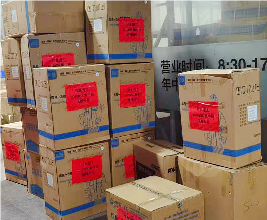 经农工党华理支部和学校校友的牵线搭桥,上海复星集团公益基金会向学校捐赠了一批物资,包含60套医用防护服、鞋套和面屏,200只医用防护口罩,1000双丁腈手套和1箱消毒液等防疫紧缺物资。