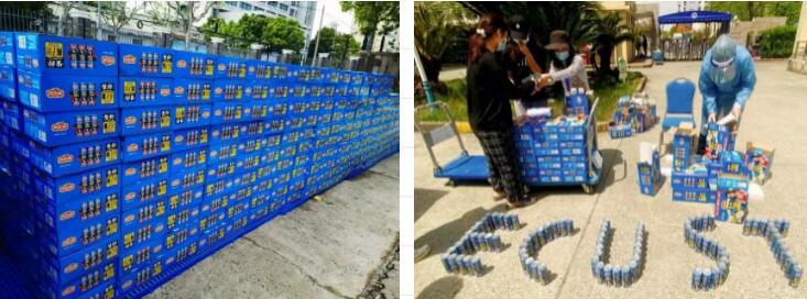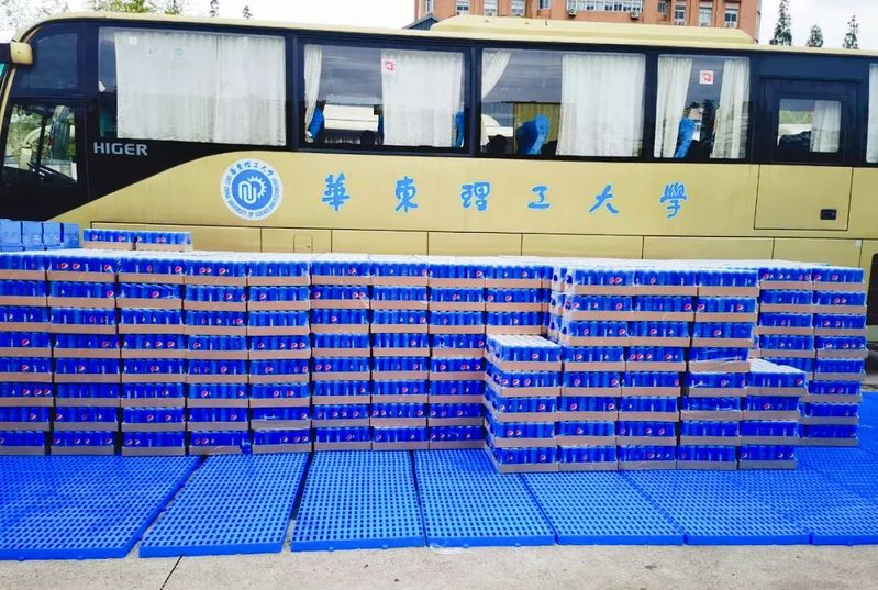 苏州校友会主动与母校沟通,了解到在校学生希望能喝上可乐的心愿,积极联络相关货源,克服物流运输困难,将2200箱(共计52800罐)可乐和一批能增强免疫力的益生菌产品运抵华理。