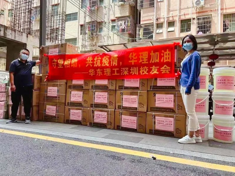 深圳校友会自发募捐采购学校抗疫所需物资,并积极协调采购抗疫物资、联系运输车辆,办理入沪通行证等工作。该批物资包括N95口罩14400个、医用防护口罩16000个、免洗凝胶96瓶、酒精消毒液210瓶、84消毒液400kg。