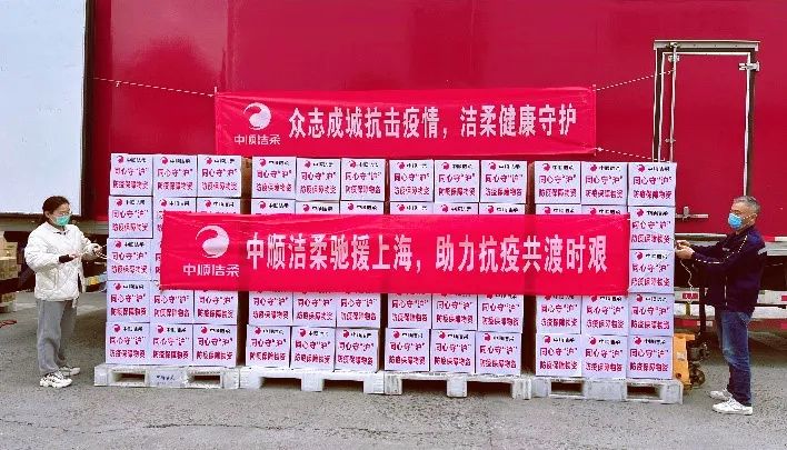 中顺洁柔纸业股份有限公司捐赠酒精湿巾、抽纸、卫生纸、卫生用品等600余箱,价值20余万元。