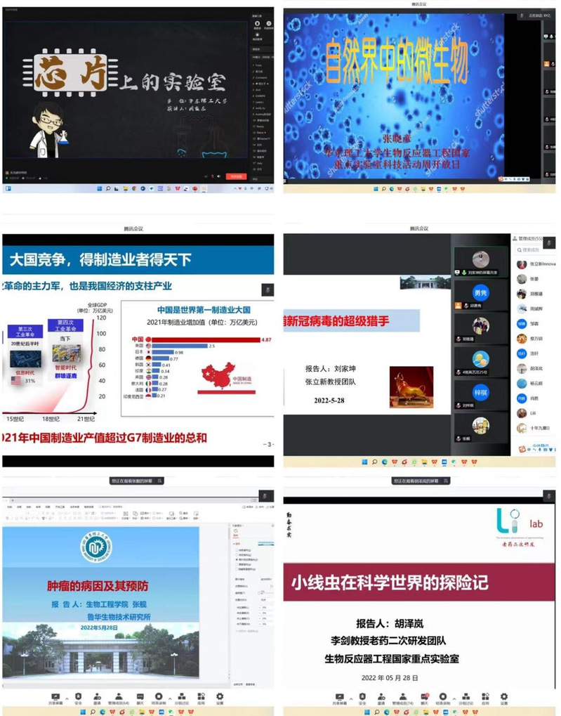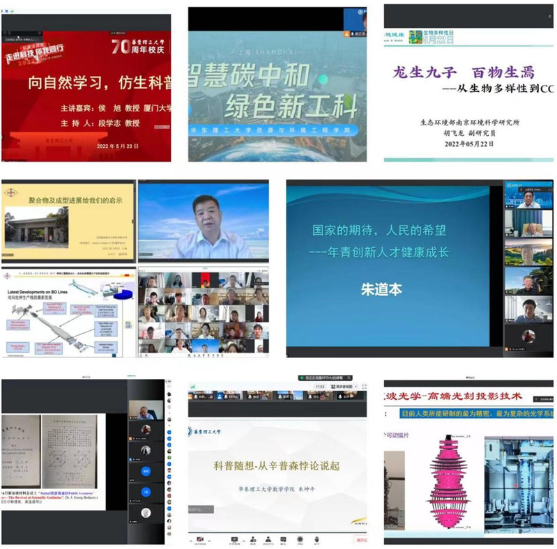 在此期间,各学院共举办各类科技活动14场,数量达历史新高。如化学与分子工程学院邀请朱道本院士和李永舫院士分别作“国家的期待,人民的希望:年青创新人才健康成长”“太阳能利用和有机光伏材料研究的创新之路”报告;生物工程学院举办中小学生科普专场活动,向青少年讲解“追捕新冠病毒的超级猎手”“自然界中的微生物”“小线虫在科学世界的探险记”等;资源与环境工程学院邀请胡飞龙副研究员作“生物多样性与COP15”的讲座。