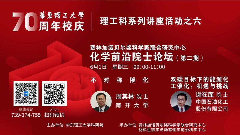 6月1日,由科学技术发展研究院主办,费林加诺贝尔奖科学家联合研究中心、材料生物学与动态化学前沿科学中心共同承办的“70周年校庆化学前沿院士论坛”,迎来周其林院士和谢在库院士。我校副校长朱为宏教授主持论坛,田禾院士对两位院士的到来表示欢迎和感谢。我校科学技术发展研究院院长赵黎明、化学与分子工程学院院长曲大辉等参加会议,300余名师生在线聆听了报告。