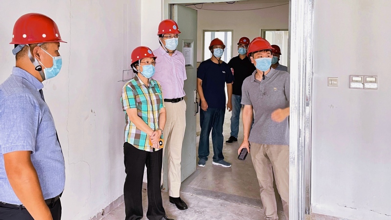 在PⅡ(PCR检测)实验室施工现场,杜慧芳听取了董玉国、刘琴的汇报,详细了解了实验室专业分区、技术标准、检测流程等情况,并对实验室安全管理体系、室外总体设计及周边交通组织等提出要求。