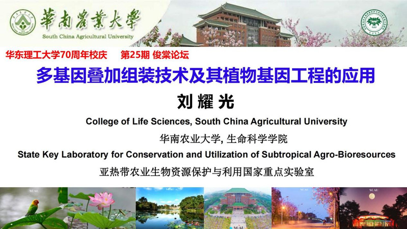 刘耀光院士作了主题为“多基因叠加组装技术及其植物基因工程的应用”的报告。他首先对华理的热情邀请表示感谢,并对华理70周年华诞表示衷心祝贺。他围绕“多基因叠加组装技术”,介绍了Cre/loxP重组系统、可转化的人工染色体(TAC),以及其团队开发的具有国际先进水平的多基因叠加系统TGSI、TGSII以及TGSII-UNiE,最终实现了多基因的有效聚合。在互动环节,刘耀光院士与参会师生探讨了分子生物学技术与多组学联合分析技术的快速发展,以及合成生物学、代谢工程、复杂性状遗传改良等领域的核心技术在双碳背景下的未来前景,并勉励华理师生为实现“双碳”目标共同努力。