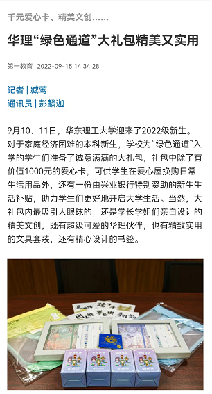 【第一教育】千元爱心卡、精美文创……华理“绿色通道”大礼包精美又实用