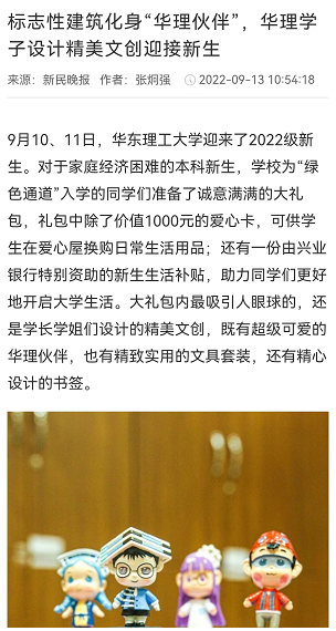 【新民网】标志性建筑化身“华理伙伴”,华理学子设计精美文创迎接新生