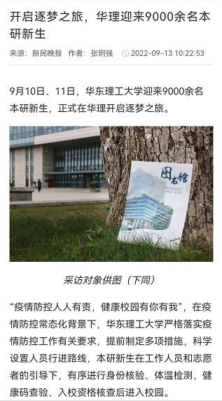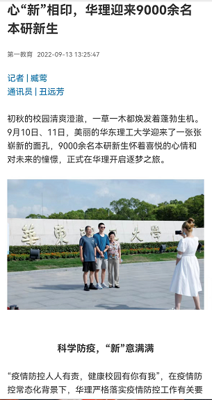 【新民晚报】开启逐梦之旅,华理迎来9000余名本研新生