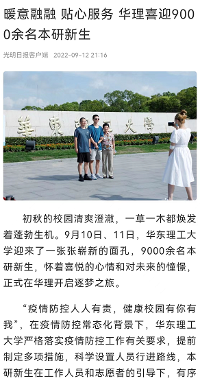 【光明日报客户端】暖意融融 贴心服务 华理喜迎9000余名本研新生