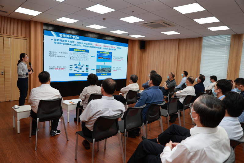 在信息科学与工程学院,调研组考察了基金委“物质转化制造过程智能优化调控机制”基础科学中心以及乙烯生产虚拟工厂、智能无人系统自主导航实验室等,听取了杜文莉教授代表工业智能与智能系统团队作的总体情况汇报。该团队聚焦流程工业数字化转型,赋能典型流程工业高质量发展,并在考核评价方面推出了一系列改革举措。