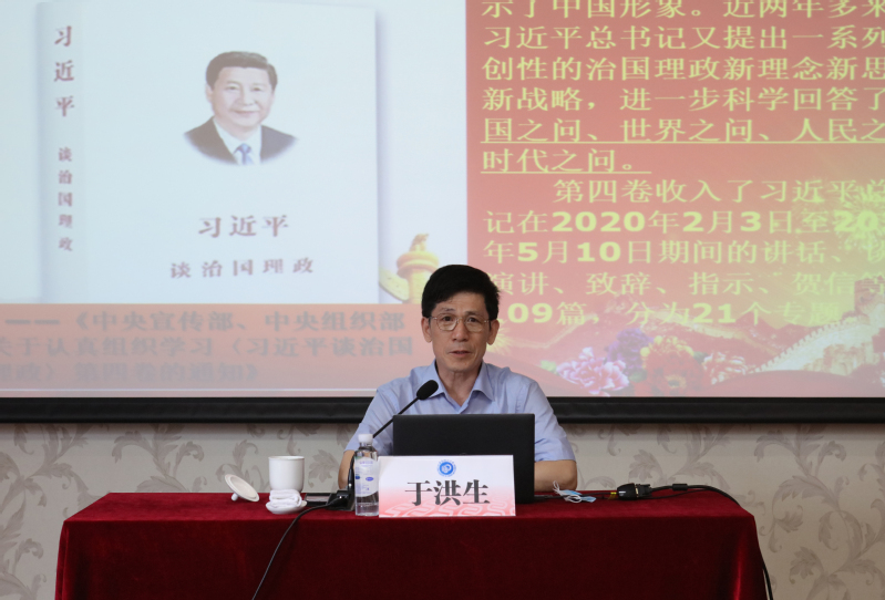 ‍于洪生教授立足重方法、悟原理、抓精髓三个维度,用一系列关键词将《习近平谈治国理政》第四卷的专题篇章和丰富内容关联起来,全面介绍了《习近平谈治国理政》第四卷出版的重要意义、总体框架和重大论断,对怎样学习领悟这本著作进行原原本本、原汁原味的领读和导学。他讲到,学习《习近平谈治国理政》第四卷,要把握马克思主义立场观点方法,要深刻领会其主要内容,要高扬新时代中国共产党人的思想旗帜。辅导报告分析透彻、深入浅出,对深刻把握习近平新时代中国特色社会主义思想的精神实质和丰富内涵具有重要指导作用。