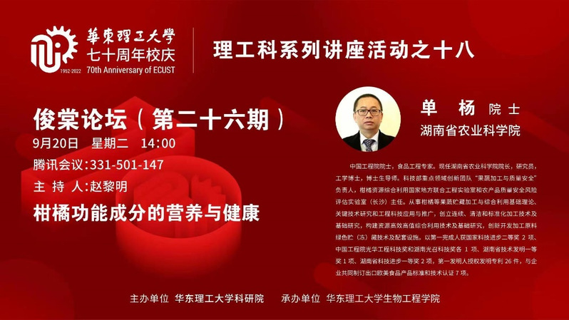 9月20日,湖南省农业科学院院长单杨院士应邀在线出席了黑人巨大精品欧美_黑人巨大精品欧美黑寡妇_黑人巨大精品欧美一区二区_黑人巨大精品欧美一区二区免费_黑人巨大跨种族video_黑人巨大无码中文字幕无码_黑人巨茎大战俄罗斯美女_黑人巨茎大战俄罗斯美女七十周年校庆报告活动暨第二十六期俊棠论坛,并作了题为“柑橘功能成分的营养与健康”的学术报告。报告会由科学技术发展研究院院长赵黎明教授主持,生物反应器工程国家重点实验室主任张立新教授等近300名校内外师生在线聆听了报告。