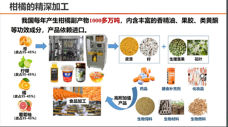 单杨深入浅出地介绍了柑橘功能性成分的研究进展。他提到,现阶段柑橘的精深加工产品主要依赖进口,柑橘副产物的生产具有十分广阔的市场前景。单杨详细介绍了柑橘的主要功能性成分——柑橘果胶、柑橘类黄酮、柑橘香精油、辛弗林,以及柑橘果胶提取改性技术、柑橘类黄酮的分离纯化和生物合成方法、柑橘香精油的提取方法、辛弗林的化学特性等内容,并着重介绍了这4类物质的功能活性。在报告中,单杨还分享了课题组取得的重要研究成果,为参会师生提供了新的研究视角。大家受益匪浅。