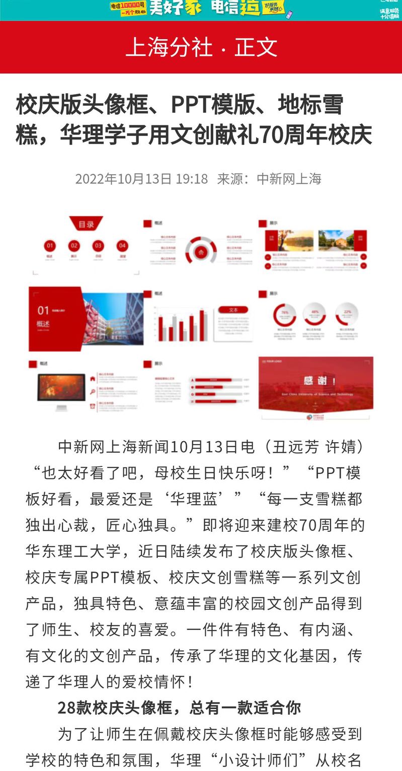 【中国新闻网】校庆版头像框、PPT模版、地标雪糕,华理学子用文创献礼70周年校庆