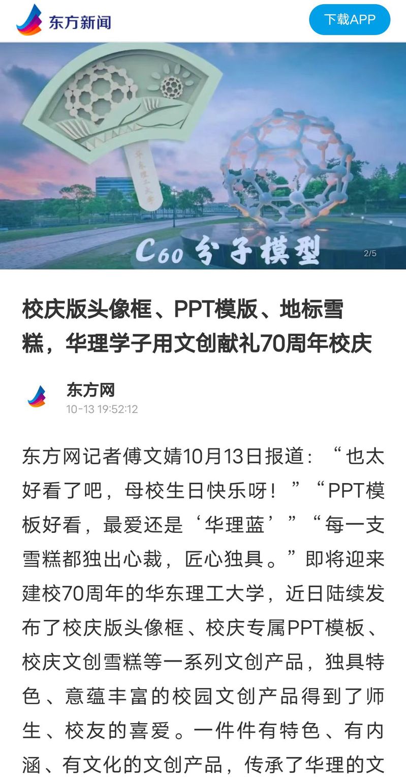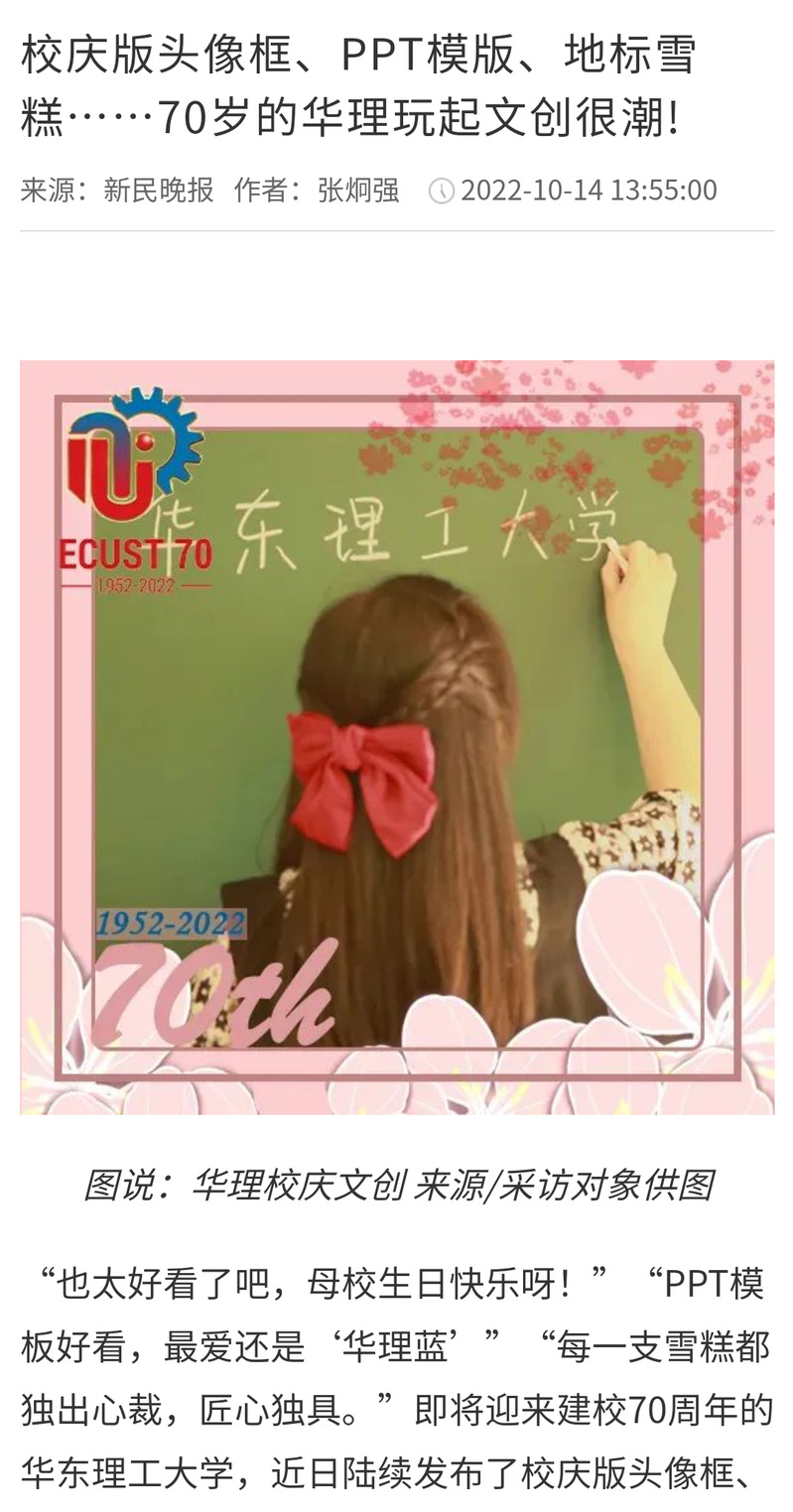 东方网】‍校庆版头像框、PPT模版、地标雪糕,华理学子用文创献礼70周年校庆‍