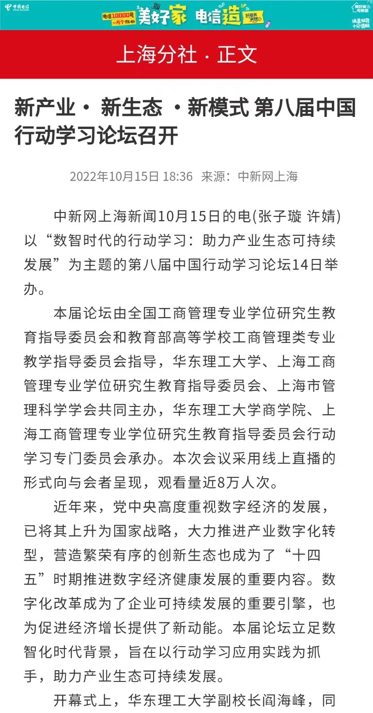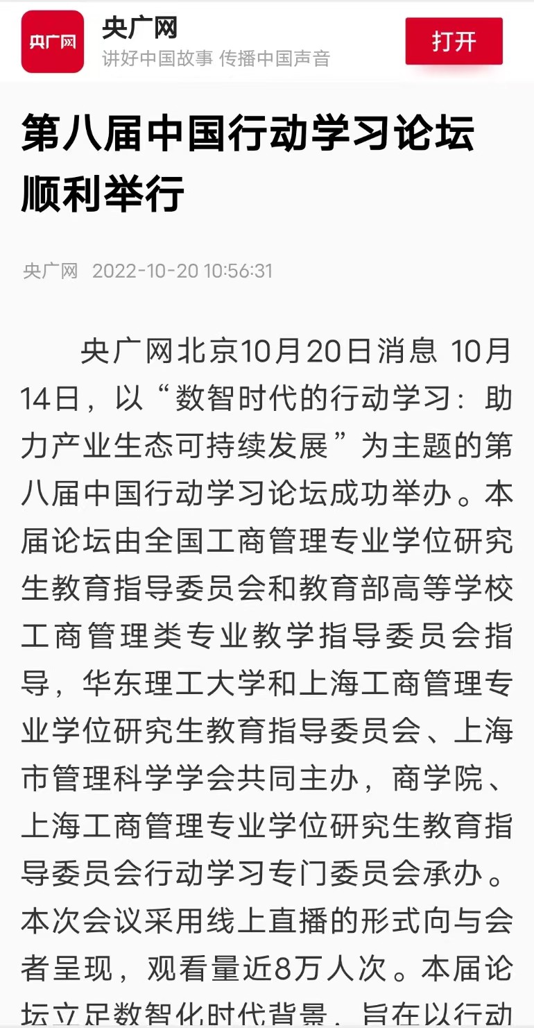 【中国新闻网】新产业· 新生态 ·新模式 第八届中国行动学习论坛召开