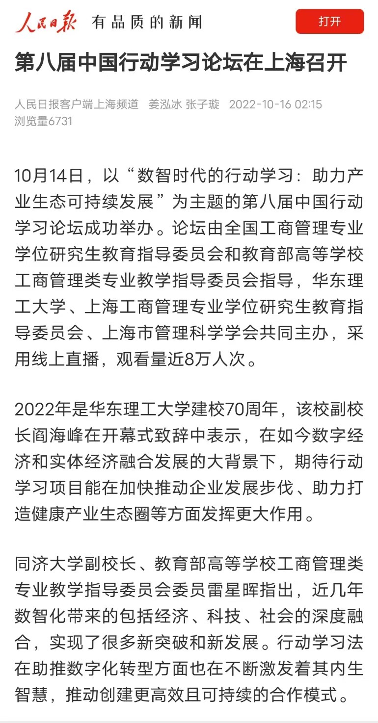 【人民日报客户端】第八届中国行动学习论坛在上海召开