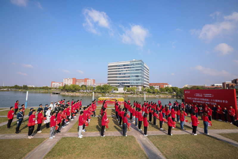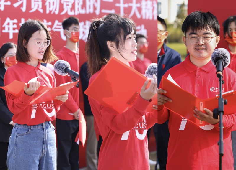 在学习贯彻党的二十大精神分享会上,支援上海市PCR核酸检测的志愿者代表、生物工程学院2022级研究生王菁同学,结合对党的二十大报告的学习,从“科学抗疫,健康赋能,结合专业所学守护人民生命健康之盾”和“当代青年,学以致用,服务社会任重而道远”两个维度,分享了她如何在“大上海保卫战”期间与新冠病毒赛跑,为上海疫情防控贡献华理力量。即将出征第五届进博会的二年级“小叶子”志愿者代表、2020级本科生白宝琴同学在分享中表示,作为国贸专业学生,要在“推进高水平对外开放,加快建设贸易强国”的进程中,贡献自己的专业力量。面对即将到来的第五届进博会,她代表全体“小叶子”表示,将以新时代青年的身份,在进博会的舞台上展现华理风采,讲好中国故事。作为与华理同天生日的幸运儿、奉贤校区疫情防控优秀志愿者代表、化工学院2020级本科生牛铁乘同学则对学校有特殊的感情,他表示遇见华理是他的幸运,在华理的志愿服务和学习生活中,体悟到当代大学生的初心与责任,明白了何为“向上向善、求真求实”的青年精神,也将努力做“有理想、敢担当、能吃苦、肯奋斗”的新时代青年,把个人的理想和奋斗融入到党和国家的事业中,让青春在全面建设社会主义现代化国家的火热实践中绽放绚丽之花。