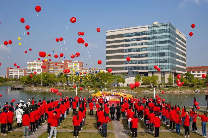 伴随着大学生合唱团现场带来的《一起向未来》的歌声,沈海涛、李剑等校领导与师生代表共同放飞了承载着华理荣光、希望与未来的气球,共同祝福华理70岁生日快乐。冉冉上升的彩色气球布满湛蓝的天空,在场师生举目仰望,在歌声中回忆往昔的奋斗,感念七十载的芳华与初心,共同展望更加光明的未来。