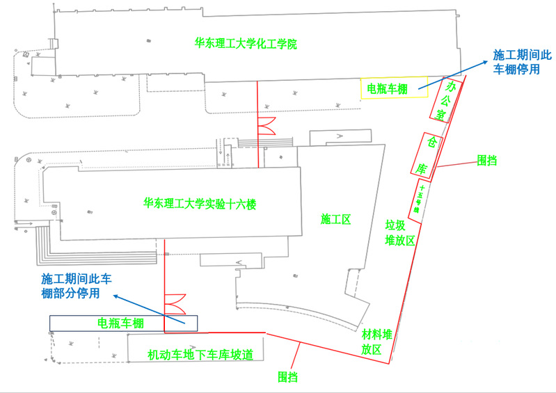 按照文明施工要求,为确保徐汇校区实验十六楼裙楼修缮工程施工安全及现场扬尘控制,需在施工范围内搭设安全围挡,因此对实验十六楼周边通勤道路进行封闭管理。