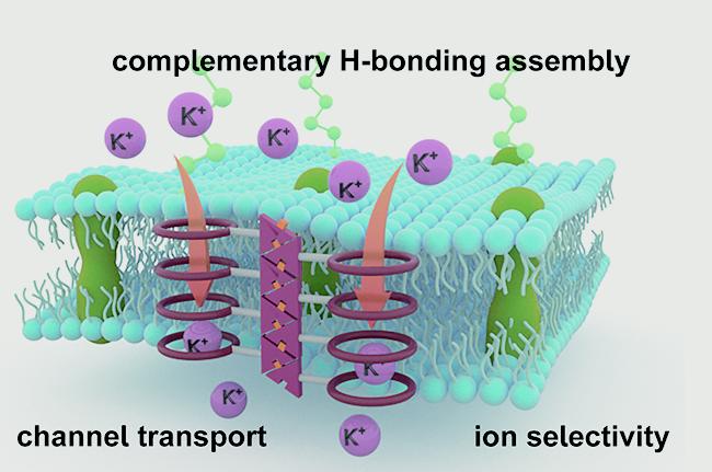 细胞膜上存在各种各样的功能蛋白,负责控制能量转换、物质运输、信息识别和传递等功能。其中,离子通道蛋白主要负责细胞内外亲水性无机离子的跨膜运输,通过开/闭状态调节细胞内外离子浓度差,从而参与细胞的众多生理过程,包括细胞的电位变化、神经传导、肌肉收缩等。因此,离子通道蛋白的结构和功能异常与许多疾病的发生和发展有关。为了理解离子通道蛋白的工作机制和治病机理,研究人员尝试利用简单的人工合成体系去模拟其结构和功能,为相关疾病诊断、发现特异性治疗药物提供理论基础。