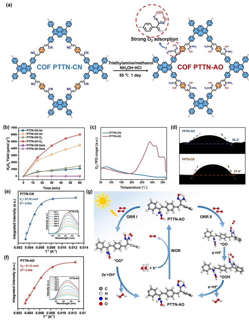 图片说明:COF中引入偕胺肟基构建氢键网络以促进光催化全合成H2O2的新策略