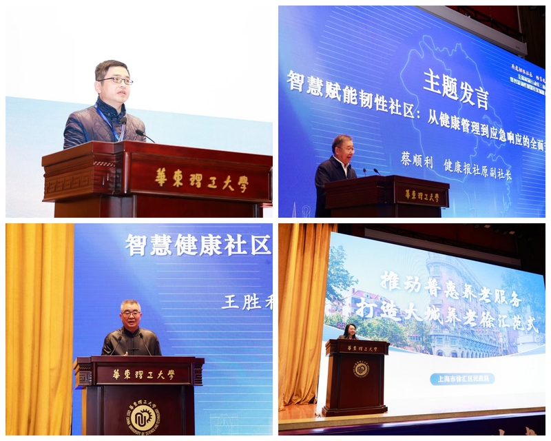 在上午的主旨发言环节,蔡顺利和王胜利分别做了题为“智慧赋能韧性社区:从健康管理到应急响应的全面升级”“智慧健康社区赋能行动:提升老龄健康安全的实践路径”的主旨发言。上海市徐汇区民政局局长周莹、苏州市民政局副局长严强分别介绍了徐汇区和苏州市在养老方面的经验做法。我校人文社科处副处长唐有财教授做了题为“学科融合驱动康养产业创新实践”的专题分享,介绍了学校各相关学科在大健康领域的相关成果,以及推动与安徽三联学院、中国老龄事业发展基金会的合作。学校将发挥学科优势,构建康养技术、康养产业、康养政策、康养服务、康养设计等研究和实践链条。