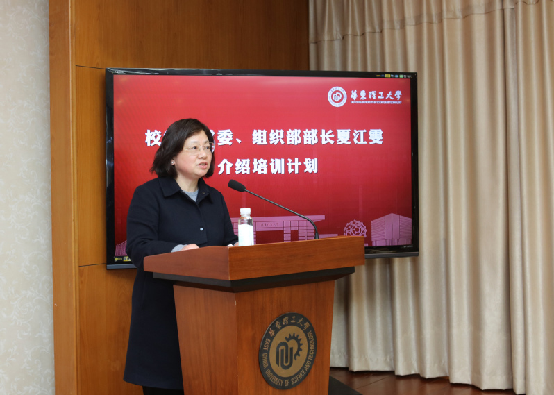 图片说明:校党委常委、组织部部长夏江雯介绍培训计划