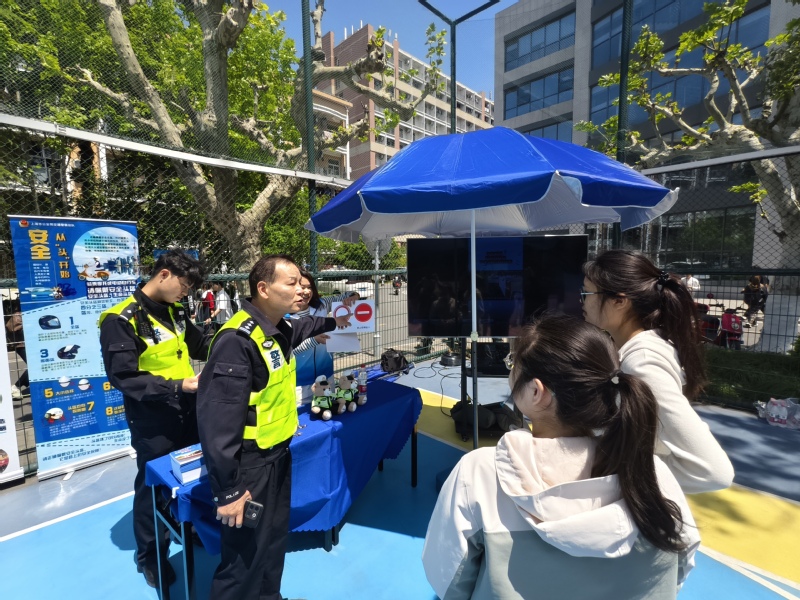 活动现场设有交通普法专区。由徐汇区交通管理支队六大队民警通过“教育+实践”双轮驱动,对校内交通法规难点环节进行普法释明,有效提升了大学生群体的交通安全素养。