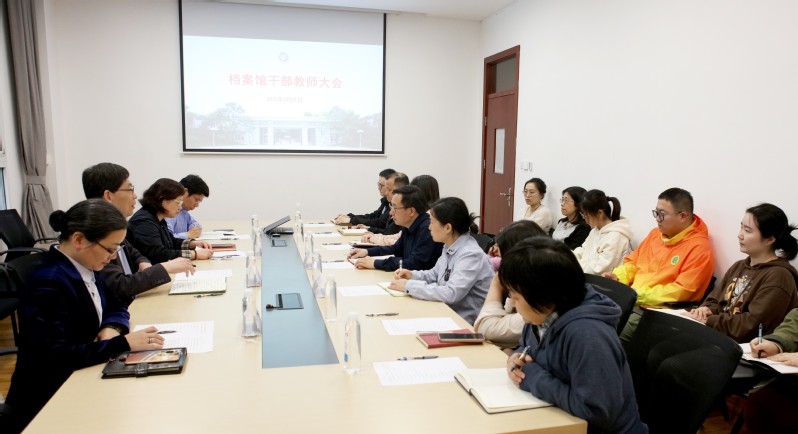 4月21日下午,档案馆召开干部教师大会,宣布学校党委关于档案馆馆长的任免决定。副校长李春忠,校党委常委、党委组织部部长夏江雯,以及档案馆全体成员等参加会议。会议由夏江雯主持。