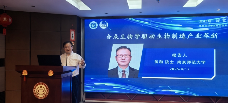 4月17日,中国工程院院士、南京师范大学副校长黄和教授受邀出席生物反应器工程全国重点实验室(以下简称“全重室”)第43期“俊棠论坛”,作了题为“合成生物学驱动生物制造产业革新”的主题报告。副校长赵黎明出席论坛,论坛由生物工程学院院长叶邦策主持。