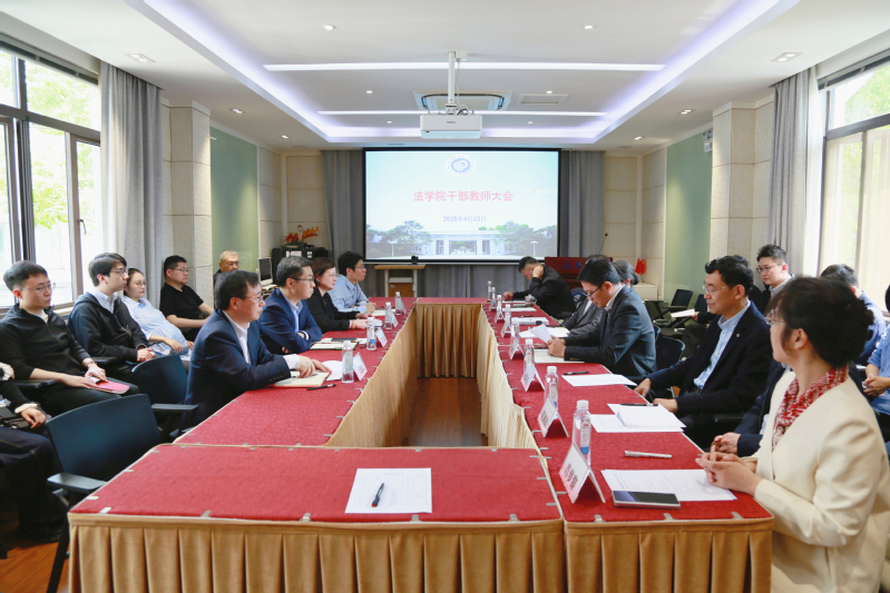 4月23日下午,法学院召开干部教师大会,宣布学校党委关于法学院党委书记的任免决定。校党委副书记、纪委书记龚跃,校党委常委、组织部部长夏江雯,以及法学院党政领导班子成员、教师代表等参加会议。会议由夏江雯主持。