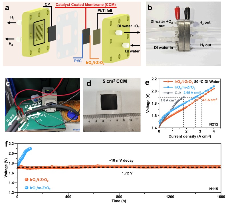 近日,国际知名学术期刊Energy & Environmental Science以“Tetragonal ZrO2 supported low-iridium catalyst activating oxygen spillover stabilized lattice oxygen for proton exchange membrane water electrolysis”为题,在线报道了我校材料科学与工程学院清洁能源材料与器件团队在质子交换膜电解水制氢低铱催化剂领域的最新研究成果。
