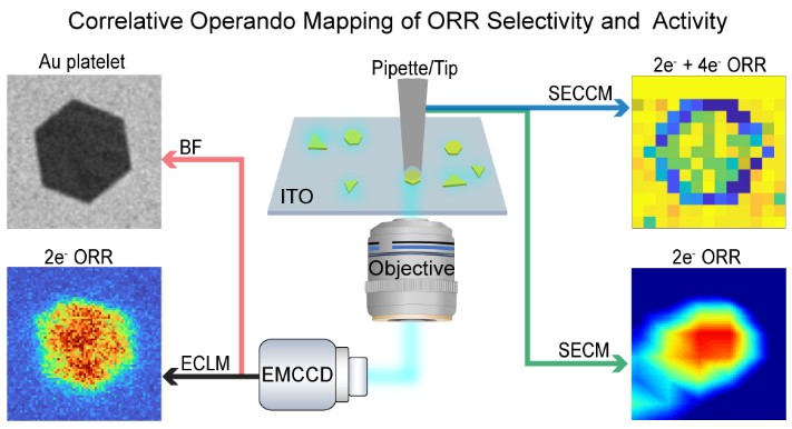 图片说明:多模态电化学成像联用技术在亚颗粒水平上原位识别电催化剂氧还原活性和选择性