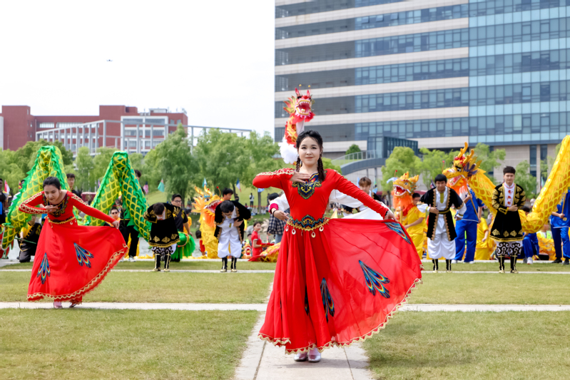 开赛前,颇具民俗风情的“舞龙舞狮”表演点燃了现场热情,民族舞则更让留学生们感受到了中国文化的多样性。