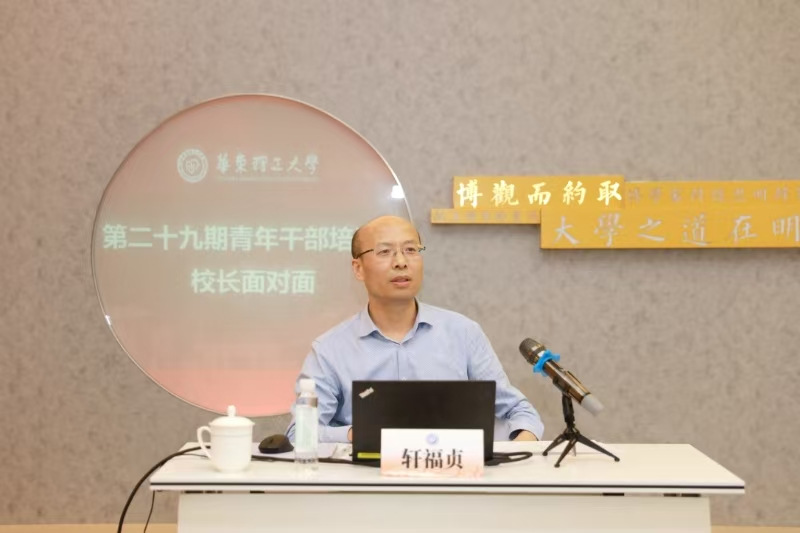 6月10日下午,校长轩福贞受邀为第29期青干班学员作题为“新格局,新担当——努力推进世界一流大学建设”专题辅导报告。校党委常委、组织部部长夏江雯主持报告会。