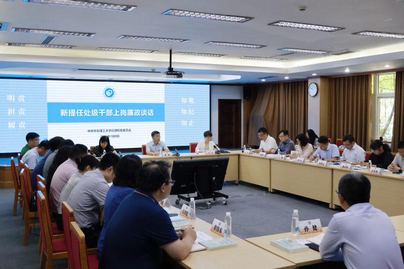 为推进学校深入贯彻中央八项规定精神学习教育走深走实,持续加强年轻干部教育管理监督,7月9日上午,校纪委在逸夫楼演讲厅召开新提任处级干部集体廉政谈话会。校党委副书记、纪委书记龚跃作廉政讲话并上党课,23位新提任处级干部参会。会议由校纪委副书记、纪委办公室主任、监察处处长马玲主持。