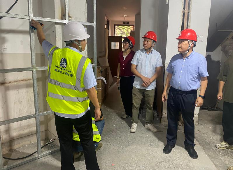 7月21日,副校长李涛带队开展徐汇校区暑期修缮工程检查,重点督导工程进度、施工质量及安全生产措施落实情况,并对坚守施工一线的工作人员进行慰问。
