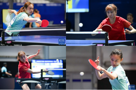 女双比赛中,中国队派出韩菲儿/王晓彤、杨屹韵/赵尚两对组合参加女双比赛。四位队员以默契的配合和昂扬的斗志从上下半区一路过关斩将,并在半决赛中分别战胜中国台北组合与法国组合,最终成功会师决赛。决赛中,双方迅速进入状态,首局比赛就打出14:12的胶着比分。整场比赛两对组合多次奉献精彩对攻和多拍相持,引得现场观众掌声不断。最终韩菲儿/王晓彤战胜队友,帮助中国队卫冕乒乓球女双冠军,杨屹韵/赵尚获得亚军。
